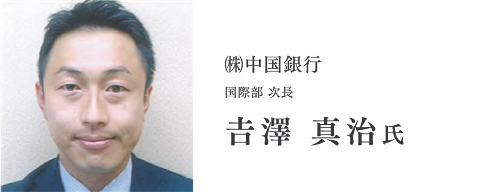 パネルディスカッションでは両備ホールディングス株式会社執行役員海外事業サポート部長の田村俊幸氏、株式会社中国銀行国際部次長の𠮷澤真治氏の2名をお招きし、美谷氏と意見交換いたします。